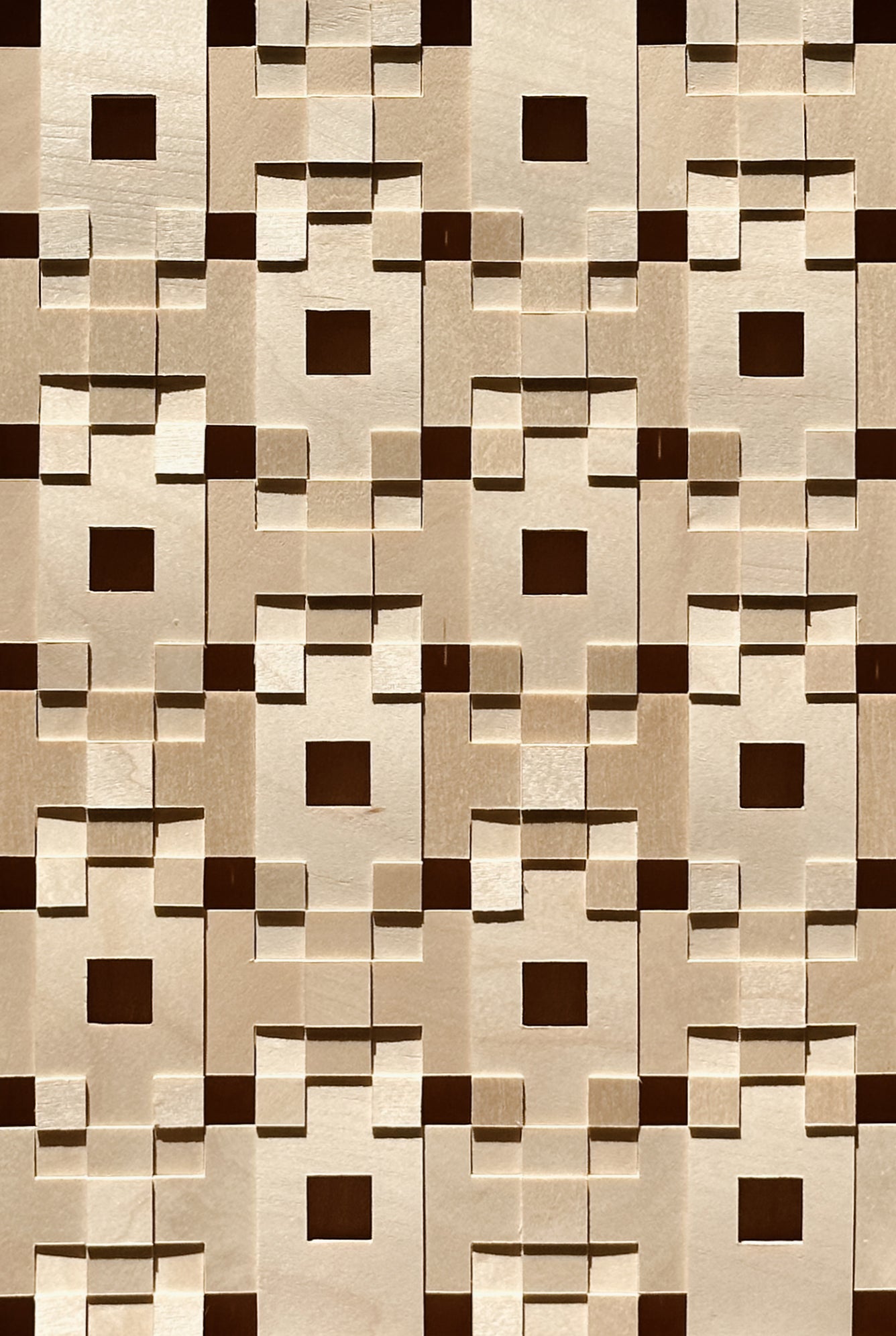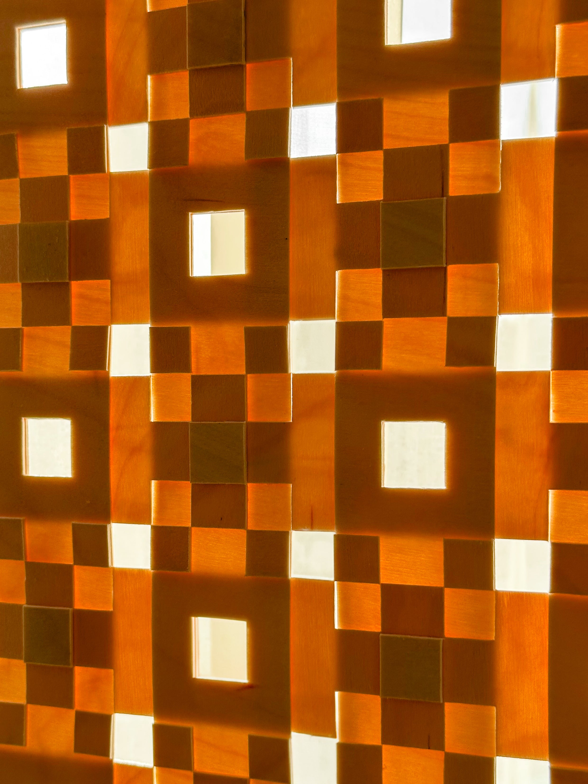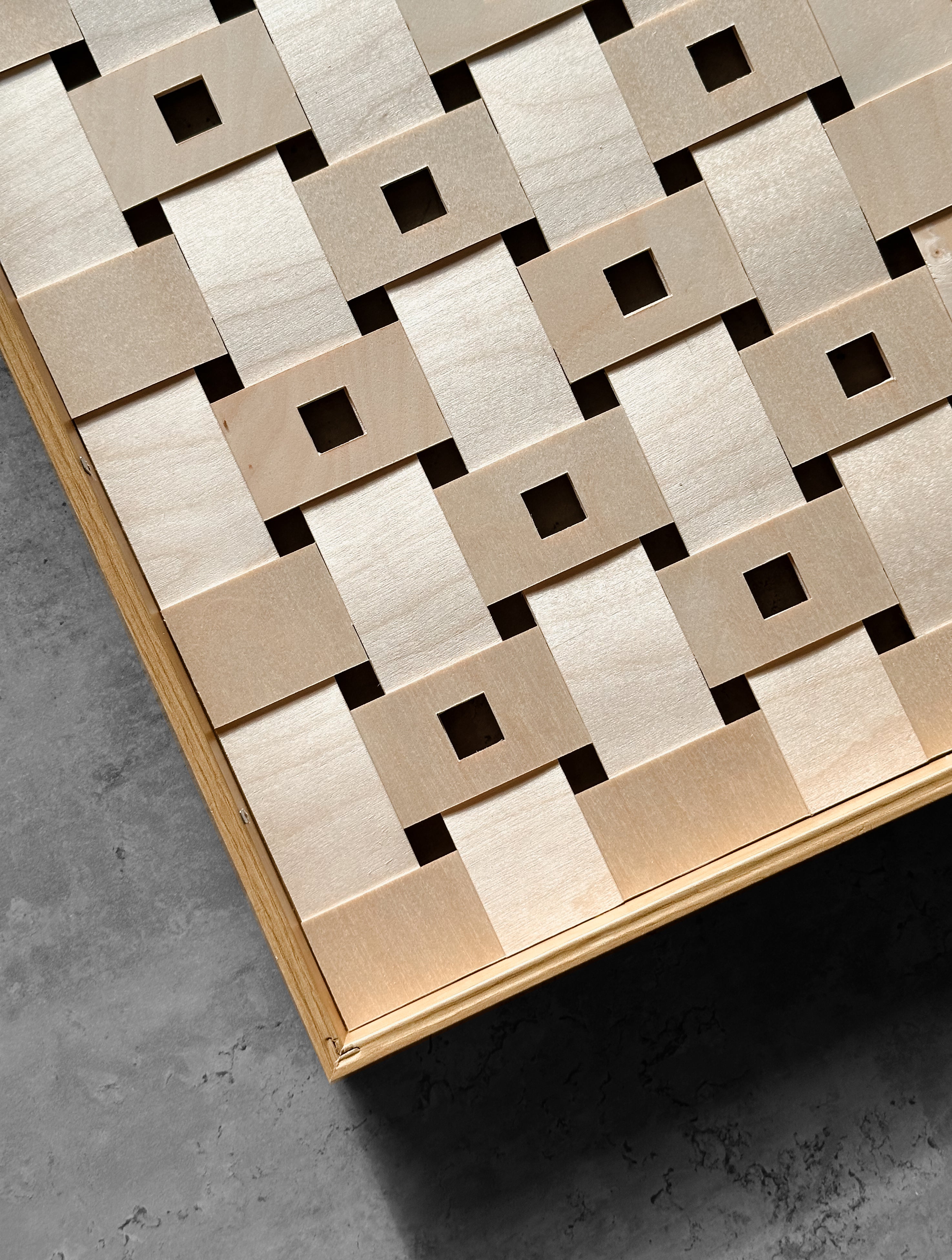 The woven structure creates a subtle rhythm, like a calm grid that softens as light passes through it. It is both precise and warm: a reminder that craft can be thoughtful without being ornate, and that technology and tradition can meet in simple, honest forms.